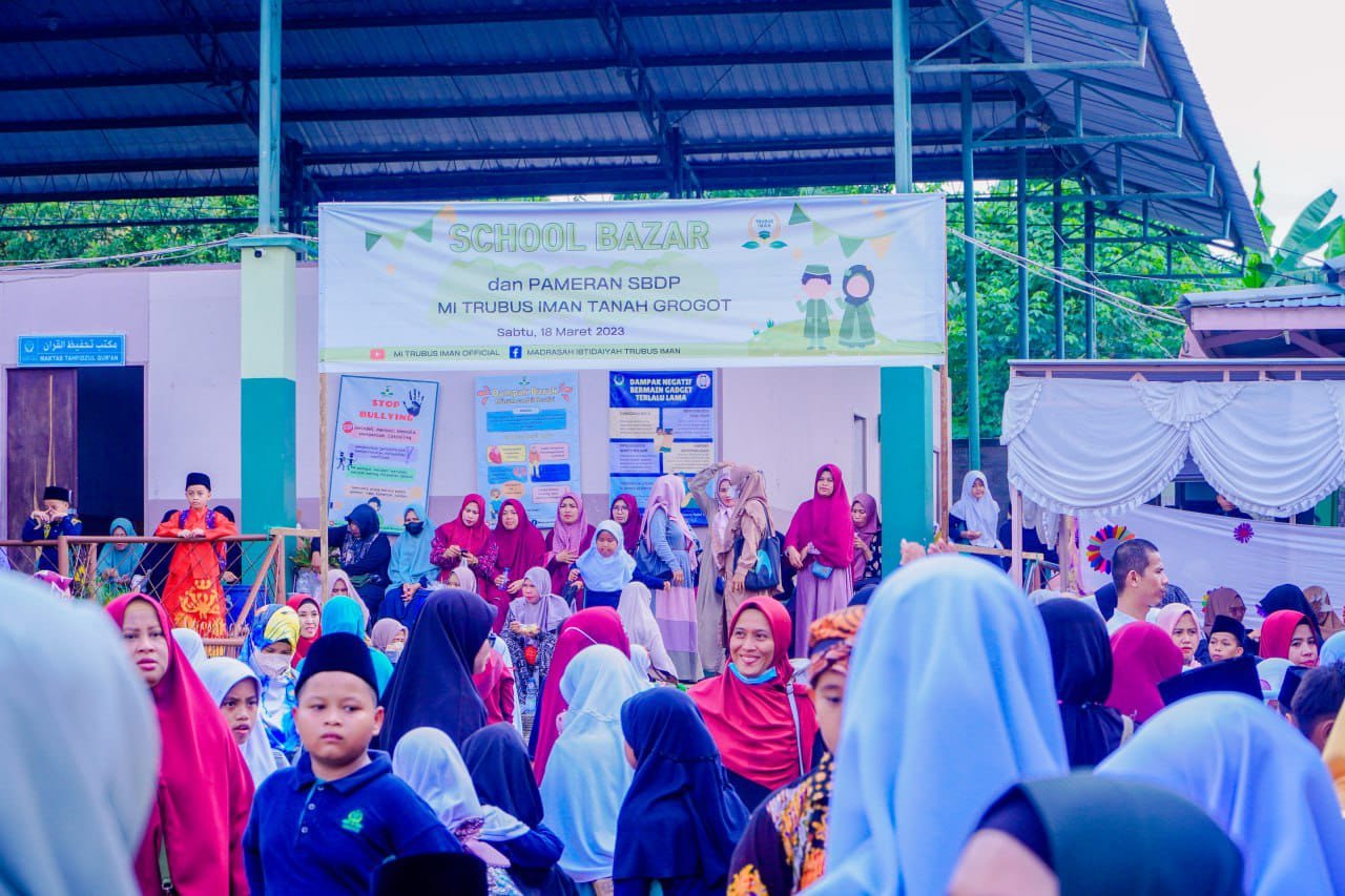 School Bazar & Pameran, Sabtu 18 Maret 2023 Aksi unik siswa Madrasah Ibtidayah (MI) Trubus Iman dengan mendadak menjadi pedagang cukup menarik perhatian pengunjung. Kegiatan bertajuk School Bazar dan Pameran SBDP ini merupakan event tahunan yang dipenuhi sejumlah stand bazar berdekorasi warna-warni serta beraneka ragam jenis hasil kerajinan tangan dan produk yang ditawarkan. Para siswa sangat antusias dan berupaya semaksimal mungkin untuk menampilkan yang terbaik. Mereka mendesain stand dengan bahan-bahan yang ramah lingkungan atau barang bekas yang dapat digunakan kembali.