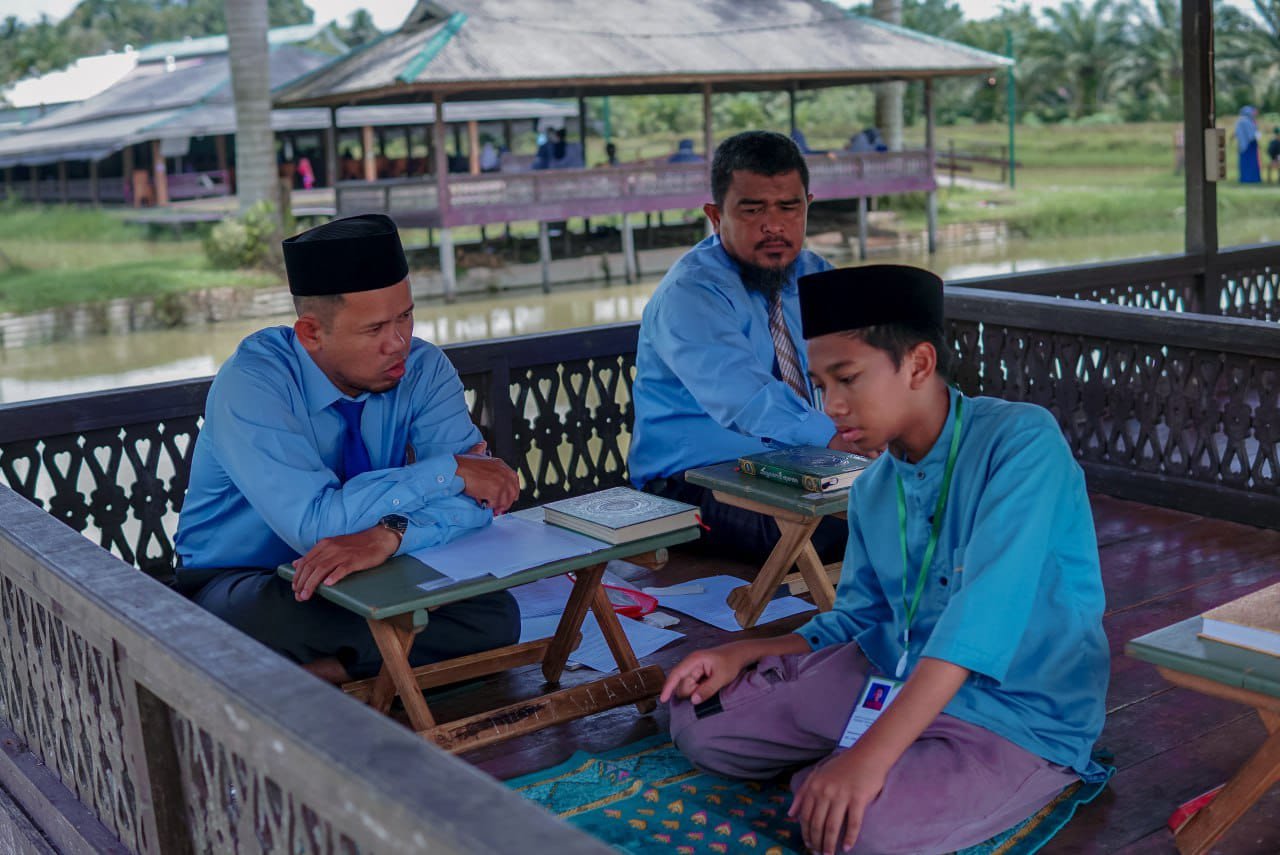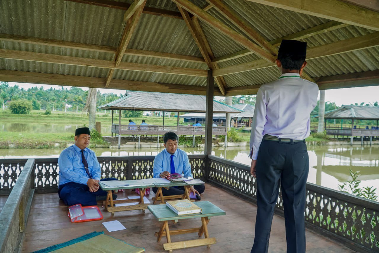 Tes ujian masuk dimulai pukul 08.30 Wita di Saung Lesehan Agrowisata Trubus Iman, adapun tes yang dilakukan adalah dengan metode wawancara yang terbagi atas materi membaca Al-Qur’an, hafalan surah – surah pendek, ibadah sehari – hari, do’a harian, dan tulis arab (imla’). Tampak calon santri sangat antusias mengikuti segala rangkaian tes yang diujikan oleh 12 orang penguji putra. Sementara Total peserta yang mengikuti ujian masuk adalah 49 orang dari total 51 orang.
